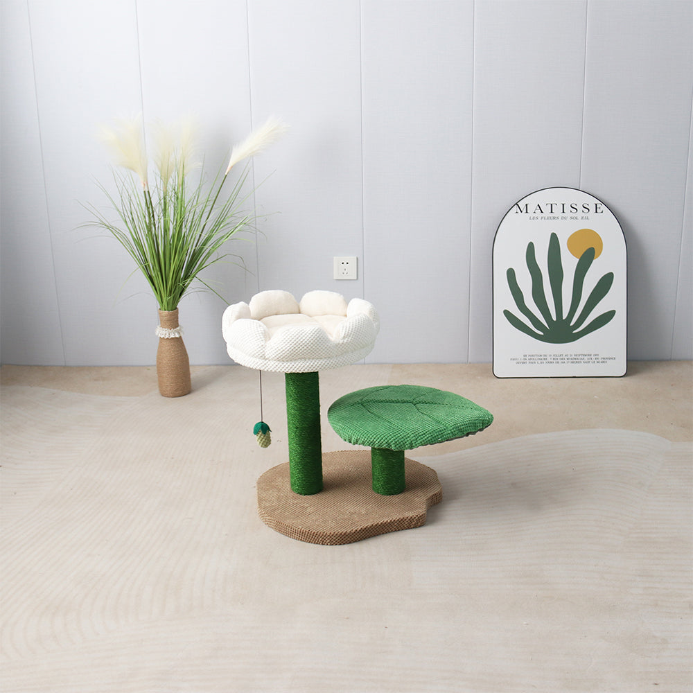 Get ready to spoil your whiskered royalty with the CATIO 2 Level White Camellia Flower Cat Scratching Tree - the ultimate throne fit for a meow-jesty! This fabulous creation boasts a striking white camellia flower and a leaf-shaped platform, keeping your cat's claws sharp and their style game on point.