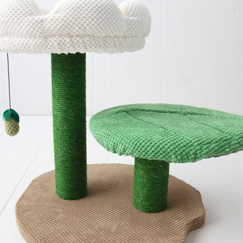Crafted with natural dyes that are 100% safe for your feline companion, this tree stands firm on its stable base, promising hours of worry-free playtime. Two delightful platforms provide prime perching spots for majestic naps, including a luxuriously soft fabric camellia platform.