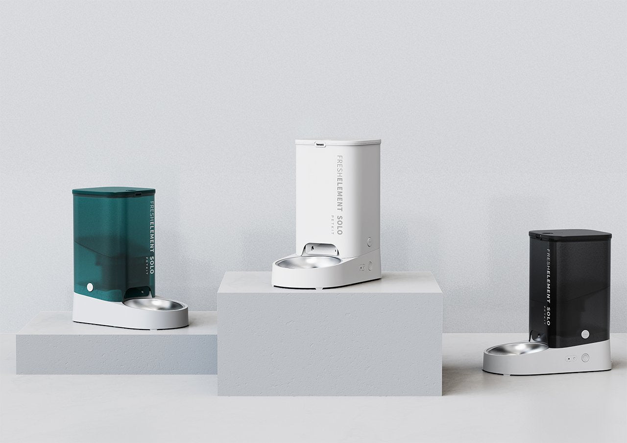 The device can store 3 litres of pet food and personalise food portions from 5g to 50g. The lid and food dispenser door contains a silicone sealing ring and a pack of silica crystals which guarantees freshness.